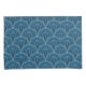Repeating geometric Art Deco pattern with teal lines and orange dots on a dark blue background, creating a symmetrical and elegant design.