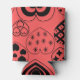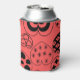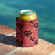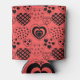 This can cooler has a Valentine’s design of repeating hearts with different graphics inside on a field of red.