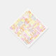 Distressed fonts of different pastel colours, creating a visually striking and balanced composition... placed all over the white and clear background. Unique idea inspired by the captivating world of graphic arts and typography... some cool and personalised napkins for her party.