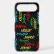This personalized case for the iPhone or Samsung Galaxy is decorated with a name, repeating in different fonts and primary colors. What a wonderful complement for your new cell phone. Colors are red, blue, green, and yellow on a black background. It is easy to change name - change in one place and it is automatically changed everywhere! Supports up to 9 characters. All Rights Reserved © 2026 Alan & Marcia Socolik.