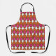 This apron has a mid-century modern design of repeating orange ovals with pink ovals inside.