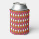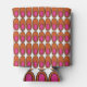 This can cooler has a mid-century modern design of repeating orange ovals with pink ovals inside.