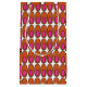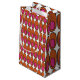 This gift bag has a mid-century modern design of repeating orange ovals with pink ovals inside.