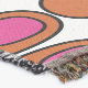 This throw blanket has a mid-century modern design of repeating orange ovals with pink ovals inside.