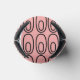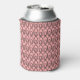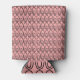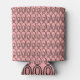 This can cooler has a mid-century modern design of a small oval inside a bigger oval on a field of salmon.