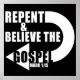 Christian Bible verse, “Repent & Believe the Gospel” as quoted by Jesus Christ in the New Testament Scripture Mark 1:15. Lovingly encourage people around you to repent of their sins and trust in Jesus with this faith-based graphic design.