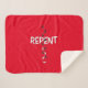 Downward footprints cross the word REPENT then turn to go upward creating a Christian cross.