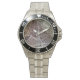 Has heft and feel of expensive stainless steel quartz watches. Good band with safety catch. I removed links, which is easy because engraved arrows show direction to push the linking pins. As always by this seller, the image (a railroad logo) is a perfect reproduction of my emailed image, and is precisely spaced and aligned.