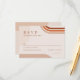 Modern boho wedding RSVP card with arch shapes in terracotta, rust, burnt orange, and dark green, emerald tones.