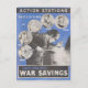 'Action Stations'. A propaganda message to the people from the war office in wartorn Great Britain. From the WW2 'War Savings' campaign. Designed to keep the nations morale up.