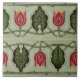 Reproduction from a tile made in Germany around 1900-1905. Jugendstil style is a type of art nouveau that foreshadowed the art deco movement. Rich, colorful and vibrant for a bold design of a pink and yellow floral motif on a sage green background.