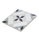 Important, Read all... Vintage Cement Tiles have a hand made quality. The edges where colours meet is slightly blurred. This look is now reproduced on ceramic tile, available in 2 sizes. Usually you rotate each historical tile 90 degrees as you lay them. An interlocking design is the result. We suggest you order one of these old world tiles as a sample before you place a large order. This Cement Tile design is available in other colour-ways. You can create a PATCHWORK by mixing many colours and patterns of Encaustic Cement Tile designs. Cement Tile is also called Cuban Tile, Barcelona Tile, Heritage Tile, Mission Tile, and Mosaicos Hidraulicos. These reproduction tiles are good for indoor use on walls and decorative projects.