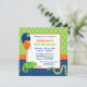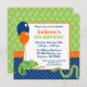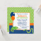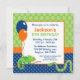 Cute kids reptile birthday party invitations. Design features party balloons, a chameleon and a snake, with accents of polka dots. Trendy colour combination of green, blue and orange. Graphics by www.jwillustrations.com