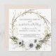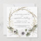 RESCHEDULED WEDDING ANNOUNCEMENTS. Dusty blush pink background with grey, sage green and white colour palette. A simple, muted colour watercolor and oil pastel painted wreath with pussy willows, eucalyptus greenery, white flowers, twigs and baby's breath. Art copyright Audrey Jeanne Roberts, all rights reserved.