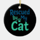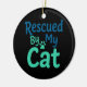 This captivating design showcases bold serif text that reads Rescued by My Cat, adorned with gradient hues of blue and green, separated by charming heart-shaped paw prints. Its minimalistic style and effective use of space make it perfect for any cat lover's merchandise.