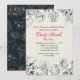 This beautiful Sweet Sixteen birthday invitation features a front with outlined black flowers and a textured background. The back of the invitation is black with white outlined flowers. Create a dramatic look with red ink accents.
