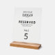 This transparent reserved seating sign, featuring your company logo and a clear table number, offers a polished, branded touch to any event or venue. It is ideal for restaurants and cafés reserving special tables for guests, hotels hosting corporate events with designated VIP seating, corporate retreats setting aside spaces for team meetings or client luncheons, or wedding receptions marking spaces for honored family members.