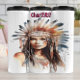 This evocative watercolor portrait beautifully captures a resilient Indigenous maiden wearing a vibrant, multicolored feathered warbonnet. The painting style is chraacterised by soft, flowing brushstrokes and intentional paint drips, giving the piece a dynamic yet ethereal quality. Her expression is both composed and fiercely determined. Adorned with traditional bone jewellery, this decorative piece is a powerful tribute to Native American heritage, beauty, and strength, perfect for those seeking expressive ethnic or bohemian art.