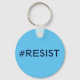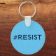 Show that you stand against hatred and bigotry with a custom keychain which reads: "Resist" in black text on a sky blue background.