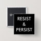 Resist & Persist, bold white text on black 15 Cm Square Badge