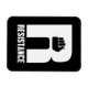 This artwork features the word resistance and a raised fist.