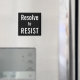 Add a message of political activism to your refrigerator, locker, and file cabinets with custom magnets which read: "Resolve to RESIST" in bold white text on a black background.