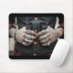 Man with Gothic skull rings and tattooed hands mouse pad.