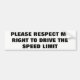 Respect My Right To Drive Speed Limit Bumper Sticker