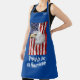 Respectable head of a bald eagle over the American flag. A patriotic customisable all-over printed apron. You can change the image and you can change or delete two texts independently. If you need to change the colour of the background, the location of the image, the font, etc., please, use the "Edit design" button or the "Click to customise further" option. Do not forget to choose the size of the apron and the colour of the strap. Just customise and buy one, have fun, and be happy!