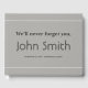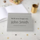 This minimalist funeral/memorial sympathy guestbook features the message "We’ll never forget you,", and the personalised name and birth/death dates of the individual who has passed on. It could be used to record condolences for the relatives and friends of somebody who has recently passed away.