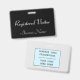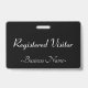 This opulent badge design features the message "Registered Visitor", and a customisable company name or other custom message. A badge like this could perhaps be used to indicate that a person is a known and authorised guest or visitor at a business or workplace. [~Z0000307]