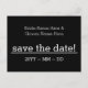 This respectable and elegant save-the-date postcard design features the message "save the date!" on the front, along with customised names, a date, and event details. Postcards like this could be used to let potential guests know about an upcoming wedding celebration or some other event.