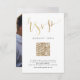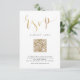Hand lettered RSVP script in faux gold foil colour, elegant and stylish, great modern simple personalised wedding QR code RSVP cards.