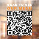 Modern window cling sign for your restaurant or cafe with your QR code for customers to scan for your contactless menu. "Scan To See" is in bold white typography and "Our Menu" is in bold orange typography (contact us if you would like to change the colours) and you can personalise the text.