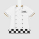 Cool hanging ornament printed with a traditional chef uniform of white jacket and chequered trousers. You can change the name or message on the front of the ornament