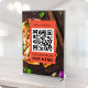 This is a "scan and order our menu" table sign with business qr code and text in black. It is used to indicate where customers can scan and place their orders. Clear message and easy to spot. A great order pickup sign for restaurants, shops, and other small businesses.