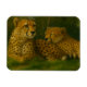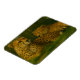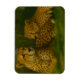 Cheetah Watch captures a serene moment between two cheetahs resting on a forest floor — one peacefully asleep, the other quietly alert. Their golden coats and sleek forms are rendered with lifelike detail, set against a lush backdrop of green foliage that evokes the calm and mystery of the wild.