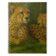 Cheetah Watch captures a serene moment between two cheetahs resting on a forest floor — one peacefully asleep, the other quietly alert. Their golden coats and sleek forms are rendered with lifelike detail, set against a lush backdrop of green foliage that evokes the calm and mystery of the wild.
