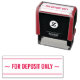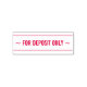 This modern rubber stamp design features the message "FOR DEPOSIT ONLY". It might be used by an accounting professional, a small business owner or an office clerical worker to efficiently add a restrictive indorsement to a cheque.