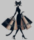 A fashionable, anthropomorphic cat is depicted carrying several shopping bags, with the phrase "Retail Therapy" written on one of the bags. The feline is dressed stylishly and wears sunglasses, exuding an air of sophistication.