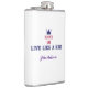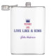 Well made flask, a little better than I had expected. Flask came in clear plastic box which gave it a nice presentation when I took it out of the zazzle packaging. Image is not printed on flask but on sticker. Don't know how this will hold up I haven't used it yet. This would make a Great gift! I plan to purchase more for friends! Cheers. I thought a little brighter than computer. Very crisp, writing wasn't