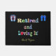 Retired and Loving It--colourful text design. Ready for you to customise. Simply substitute your own names for Len & Virginia.