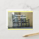 "Retired and Still Rocking" postcard, two blue rocking chairs on the front porch. Great way to announce a retirement party.