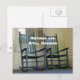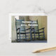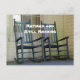 "Retired and Still Rocking" postcard, two blue rocking chairs on the front porch. Great way to announce a retirement party.