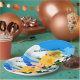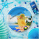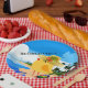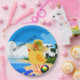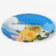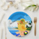 Retired Chick, colourful design with chick on the beach, custom-designed paper plate.