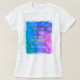 This tee has an artistic, colourful painted background with vivid blue, green, and purple rose colours.