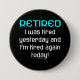Retired - I was tired yesterday and I'm tired again today! Funny and humourous saying about getting older and aging saying / quote. Black background can be changed to any dark colours.
