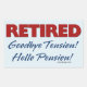 Retired: Goodbye Tension Hello Pension! Witty and funny Retirement Saying / Quote for light blue black background can be changed to change to any colour you want.