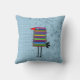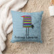 Retired Librarian "Book Bird" pillow. A feminine and sweet, pale blue pillow created using a layered effect. Background is blue with a layer of book page writing and artist drawn book bird design. Back of pillow designed in coordinating colours. *All graphics created by artist Gail Gabel*