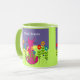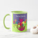 Cute Retired Librarian mug, whimsical cat and bright coloured flowers design. Perfect for the retiring librarian who loves cats.